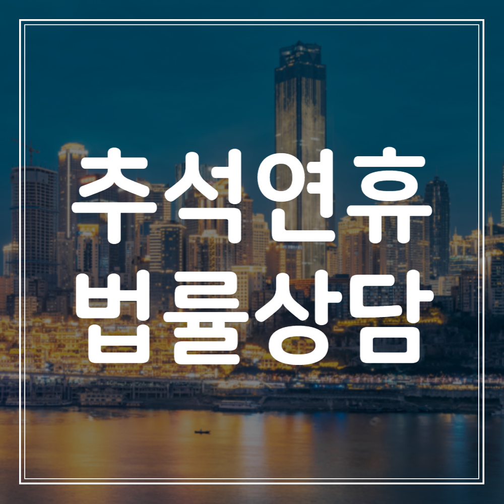 저희 법무법인 부산사무소는 추석 연휴 기간 중 휴무이지만, 연휴 기간 동안 이용민 변호사와 전화상담(유료)과 방문상담예약(상황에 따라 일정이 맞다면 일부 기간 중 방문상담예약)은 가능합니다.