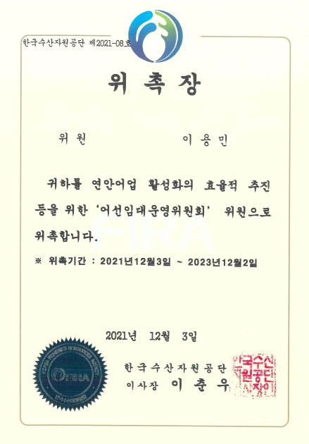 저희 법인의 이용민 변호사님께서는 한국수산자원공단 어선임대운영위원회 위원으로 활동 중이신바, 2023. 9. 19. 위원회 회의에 참석하셨습니다.