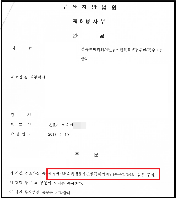 [부산형사전문변호사][부산민사변호사][부산형사전문변호사][징역][무죄][집행유예][기소유예][감형][벌금][승소][화해권고결정][조정][법률상담][부산변호사찾기][부산변호사추천][구속영장][손해배상][체포][수사입회][변호사동석][구치소][교도소][사기][성범죄][강간][강제추행][음주운전][횡령][배임][마약][특가법][성폭법][상해][약식][형사변호사][공판][판결선고][파기][성공][고소][기소][불기소][혐의없음][구공판]